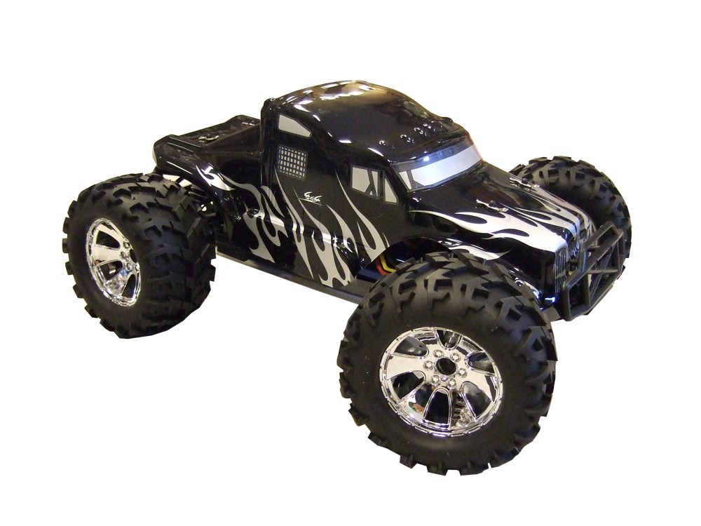 Dette er en veltepetter, det er Til dels Savage flux og, legger seg fryktelig lett på ryggen, men tåler mye pryl. Men ta en titt på E-Revo på youtube... Nå har eg hatt Kyosho saken (men som Nitro) Savage Flux og har nå E-Revoen, er beste bilen eg har hatt, og kan definitivt anbefale.