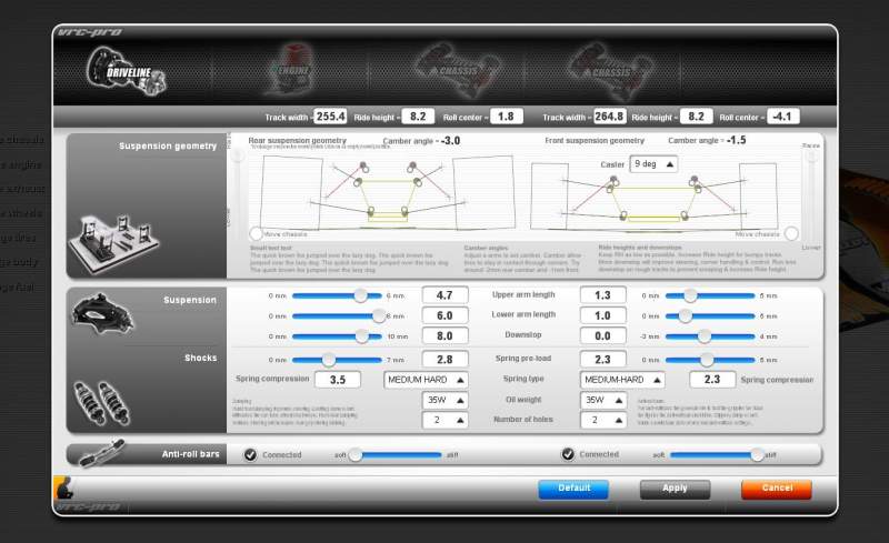 Racers are getting pretty impatient (and some even upset) with us that VRC Pro is still not released although it was announced almost 2 years ago. You can’t force such projects, it’s ready when it’s ready, so don’t get upset with us. VRC Pro has turned out a far more ambitious and therewith far more complex project than anticipated when we started it end of 2005. VRC v3 is working smoothly and is attracting more and more racers, but the big problem is that it is totally inflexible in accommodating anything else but nitro on-road. And the market has changed since we started VRC v3 at the beginning of this decennium. Off-road is big now, and brushless and LiPo’s have revived electric racing as well. VRC Pro can and will handle all these classes but our emphasis is now on getting VRC Pro out with electric and nitro on-road first. This is of course what we know best. Off-road will follow later, development work on chassis and tracks is still in a very early stage. The good news is that we seem to be getting closer to beta testing the VRC Pro software now that our proprietary Xandra graphics engine is fully optimized and implemented. The graphical user interface (GUI) is getting a final redesign by Tony West now and is looking slick and clean as what we can expect of Tony. With these last 2 hurdles almost taken we can now say that we are pretty close to beta test. Better not give any release dates yet because you will kill me for it when we miss them…