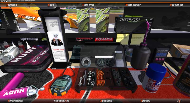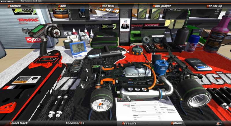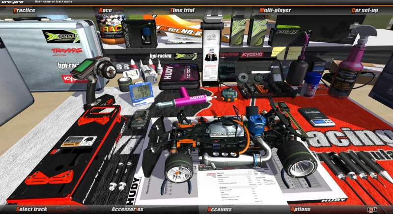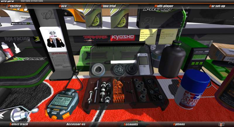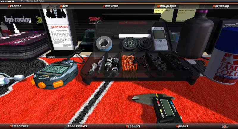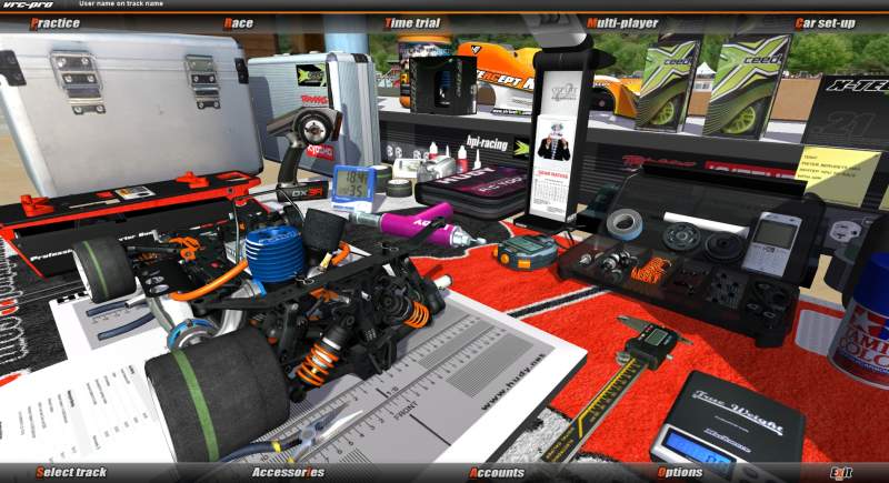The pit table is fully customizable with the accessories you would normally also have on your pit table: tools, radio, starter box or charger, you name it and it’s there! All these accessories are there to be picked up and looked at. So there may but stuff on your pit table that you haven’s used or seen before and now it’s there in hi def 3D.