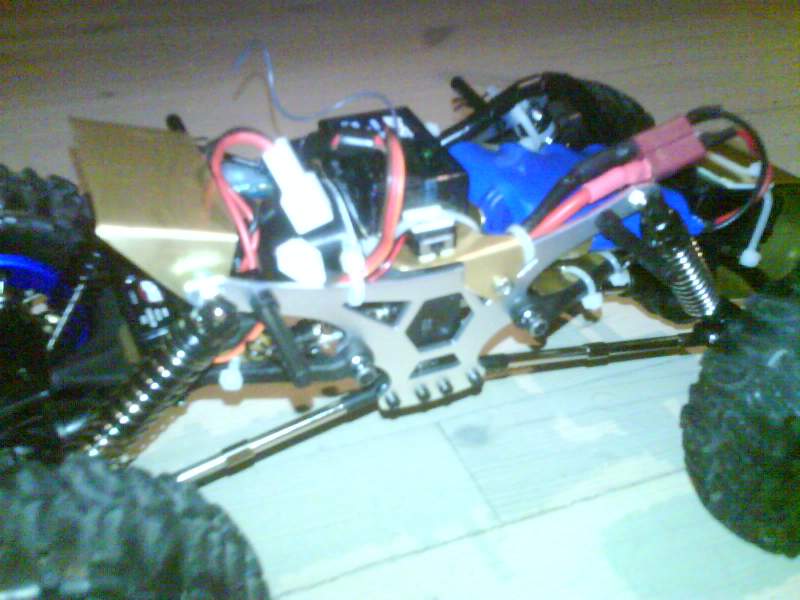 Modda min litt jeg og Snudde elektronikkplata opp ned og moddet den litt for å få den skikkelig på plass. Får ca 5mm lavere tyngdepunkt og det tillater at batteriet flyttes lenger frem, ca 2 cm. I tillegg har jeg 30 g med vekter i hver av fremhjulene (for mye?), 40 gram over servoen og 20 gram på servoplata bak.