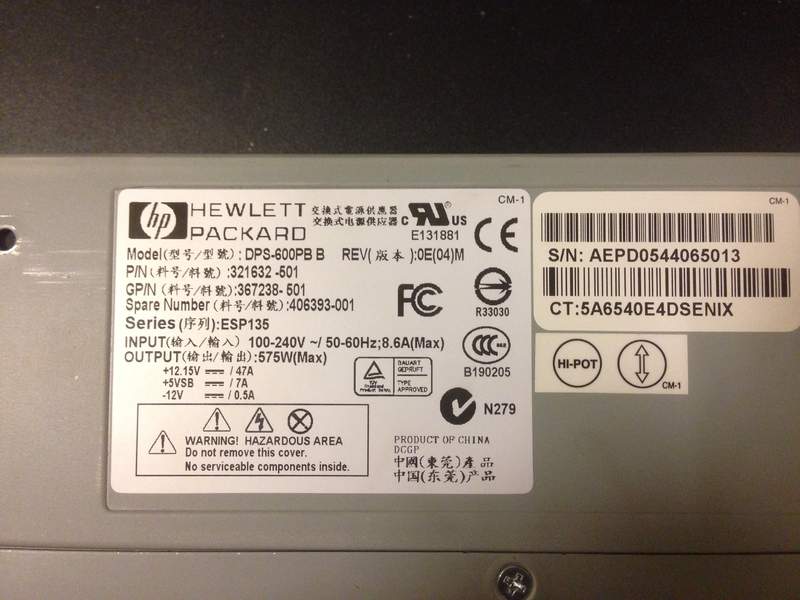 Har et par HP DPS-600PB PSU og et par 800W PSU i tillegg om nødvendig.