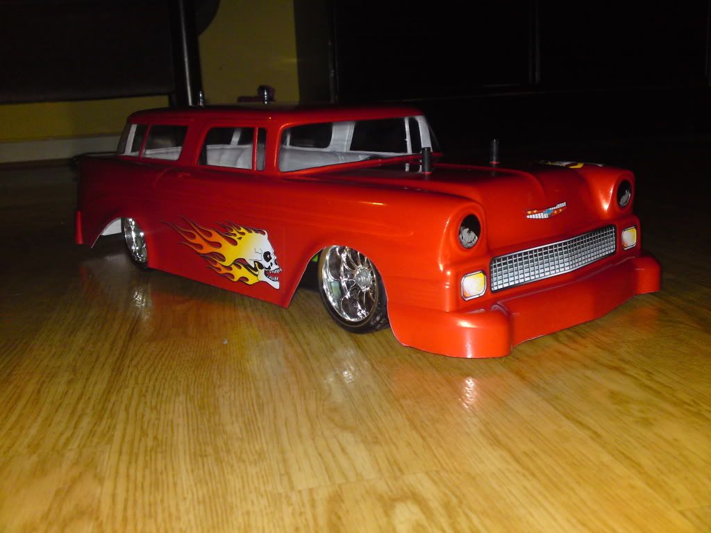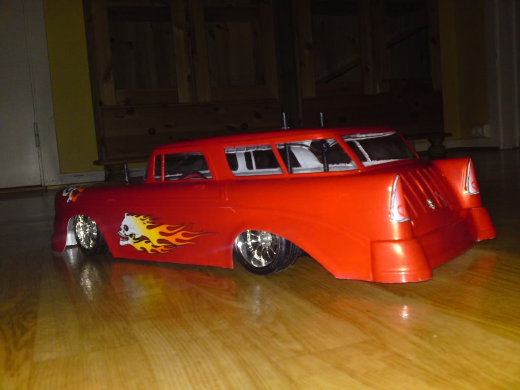 Nytt kaross på drifter'n. Kjører på med et noe uvanlig driftekaross denne gangen, ett Chevy Nomad '56 kaross fra Parma. Nye såler er det også blitt: HPI Racing Work XSA med 9 mm offset.