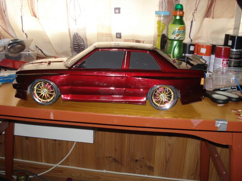 Skal lakke karosseriet (lexan) i en litt mørk fancy rosafarge, eller en dyp fin lillafarge.