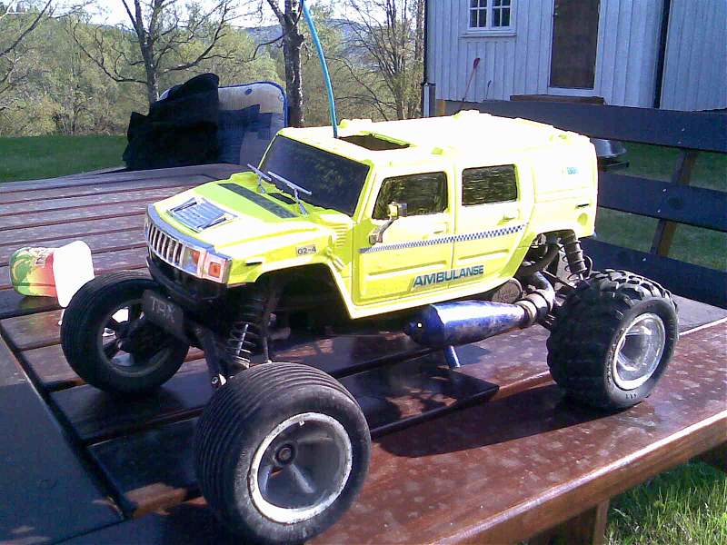 Kjedet meg litt igår, min sønn hadde en lekebil som var blitt ødelagt, så da tok pappaen karrosseriet, limte med litt superlim og fort og gæli kom til dette resultatet ser bedre ut på bilde, men blir ikke lysbro på denne nei.. er jo ikke noe arti å ha et fin fin karroseri på en nitrobil man bruker å herje med :P