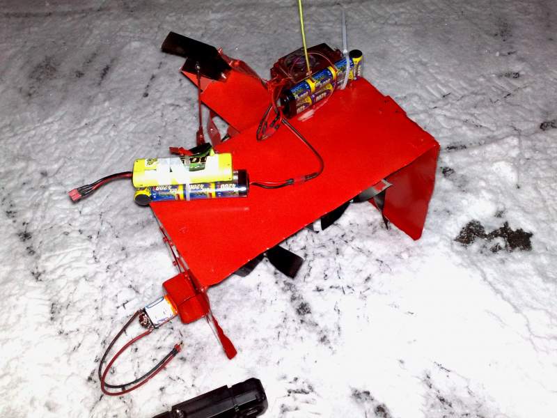 Alt av elektronikk bortsett fra servoer er enten i boks eller lagt i en pose rundt.