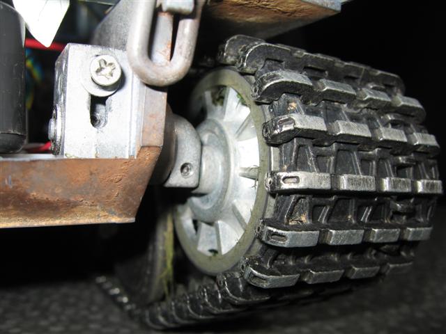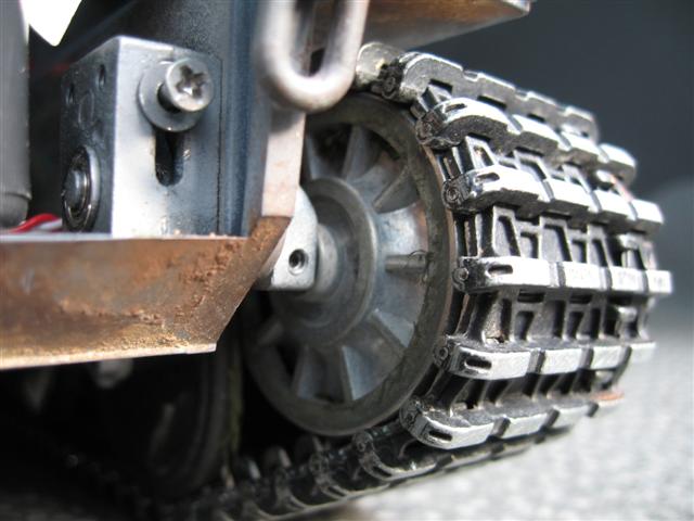 • Så det er ikke bare jeg som sliter med belteavsporing bake på idlerhjulet. Jeg vurderer å forlenge akslingen litt, legge på et par shims slik at idlerhjulet kommer litt lengre ut og dermed i senter i forhold til løpehjulene.