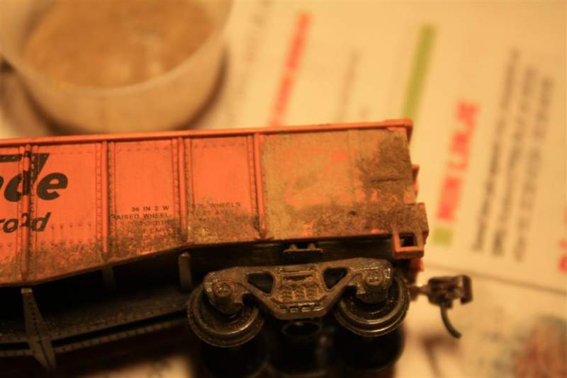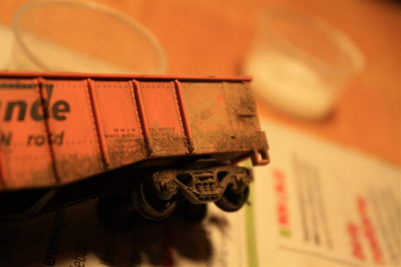 • Prøvde meg litt på MIG pulveret i går. Testa litt på en togvogn først, for så å gå på litt på tanksen. Less is more for å si det slik, synes det ble bedre på togvognen en på tanksen. Derfor bare bilder av den. Nytt forsøk i dag, og bilder kommer om det blir godkjent.