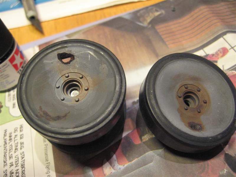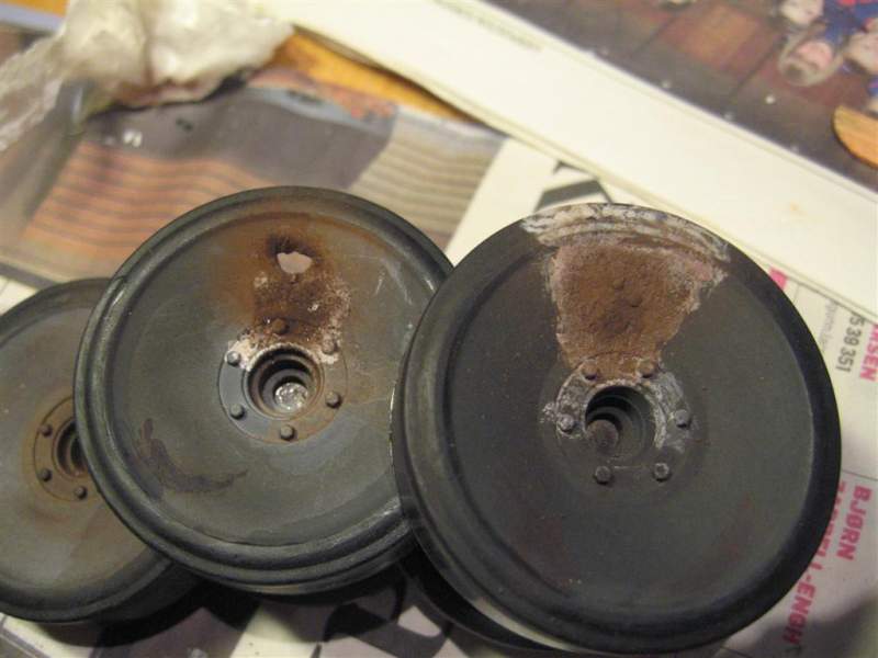 Føler at grunnfargen på understellet er på plass nå, og at black wash og mig pulver kan 'dashes' på i kveld. Så noen utrolig kule bilder av et hjulsett på et forum(skal se om jeg finner det igjen) med hull og rust vakkert re 'kreert'.