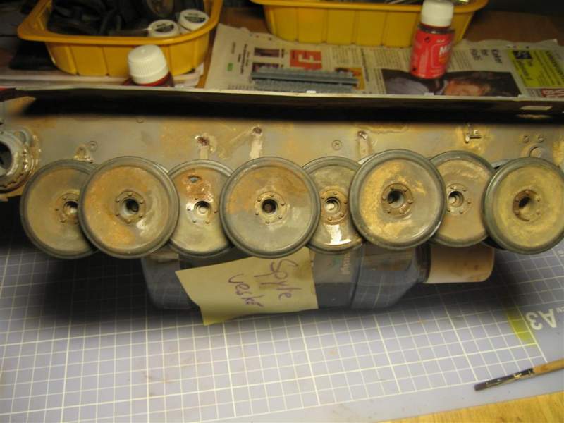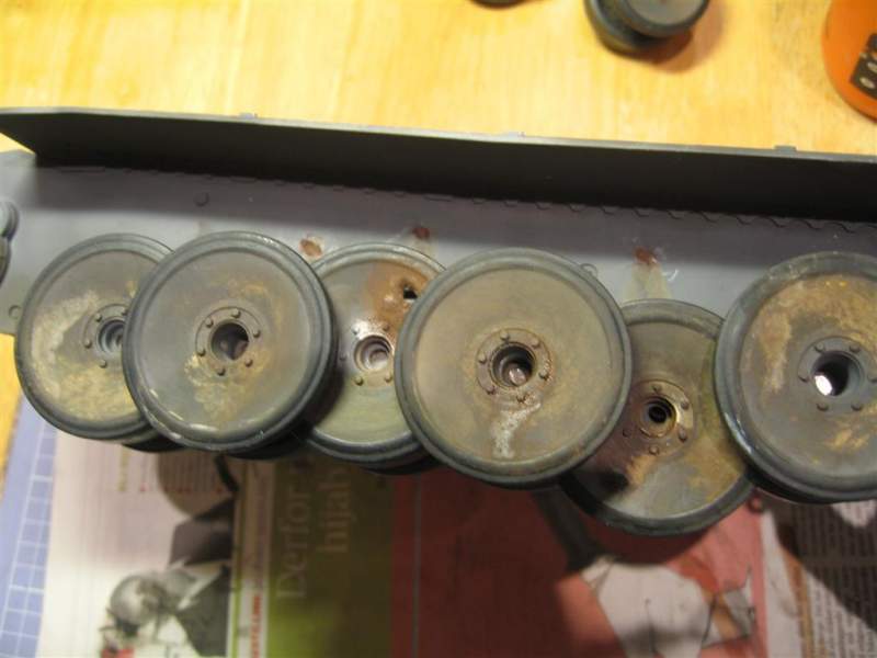 Er ikke så glad i hull i road wheels, men rust / gjørme blei knall bra. Dette blir en helt rå TigerI