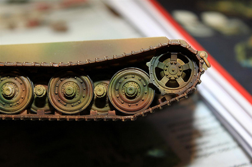 På chipping bruker jeg å rive av en liten svamp bit, matt sort+matt brun og dyppe bare litt av kanten i malingen, 'dyppe' av på et papir til det nesten ikke kommer noe mer og så på modellen. 1/48 blir for smått å male chipping på. Men på 1/16 tenker jeg det vil funke bedre.Stian Sollie/1976/ Drammen rock city