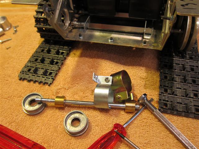 Akslene til idler trenger å slipes ned litt , siden de sitter bom fast i idler hjuler når jeg tighter til de 3 små skruene som holder hjulet sammen.